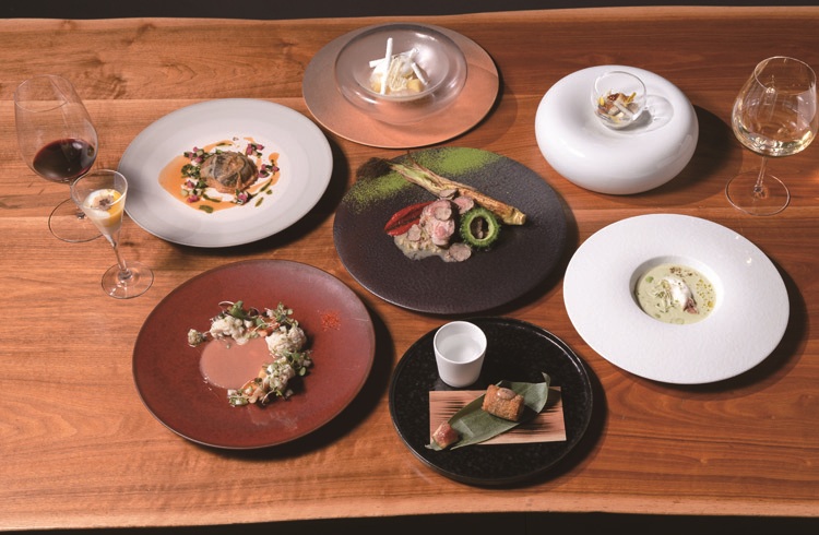 海抜250メートルの東京の素晴らしい絶景と相まって、不思議植物や珍しい植物が鮮やかに施され、東京タワー、スカイツリーを同時に目にすることができる眺望とともに、フレンチをベースに華やかなメニューを堪能ください。