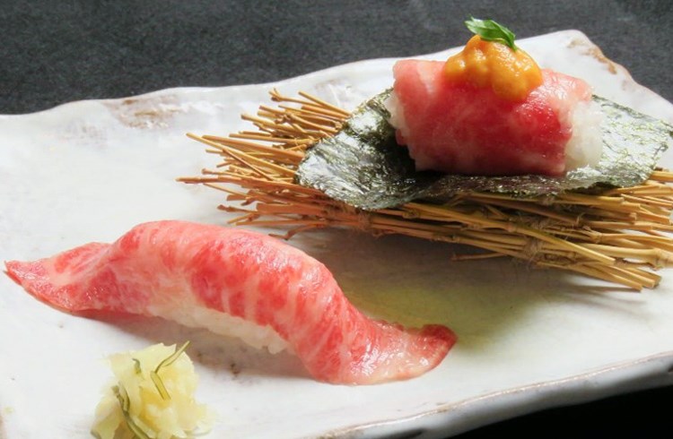 和牛全体のうちわずか1.24%の認証近江牛、この最高峰の近江牛の更に頂点の部位のみを使用してお客様の目前で焼き上げ肉懐石を提供します。和食とフレンチのエスプリが楽しめる雪月花スタイルをお楽しみください。