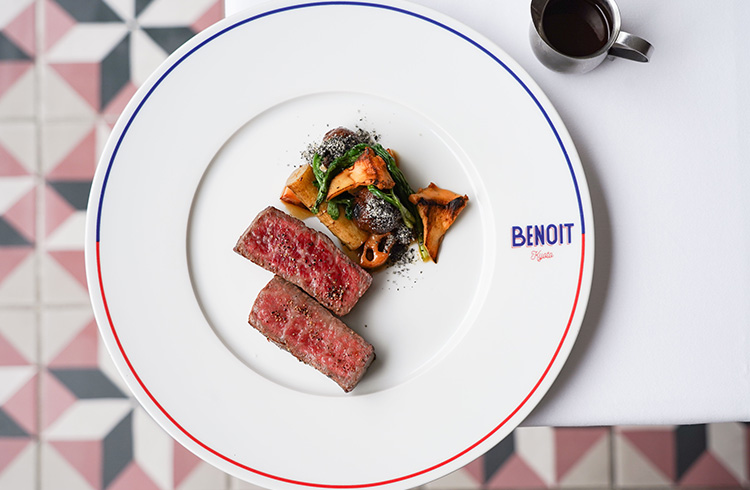 「ブノワ」は、1912年パリにオープンして以来100年以上続く老舗ビストロで、温かく心地よいレストランとしてパリのお客様に愛され続けています。2005年よりデュカス・パリが受け継ぎ、伝統ある店に新風を吹き込むと同時に、そのエスプリを東京、ニューヨーク、そして京都にも広げています。フランスの伝統的なビストロ料理に旬の味わいを取り入れ、モダンに昇華させたブノワのメニューを京都でお楽しみ下さい。
