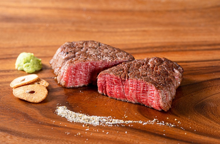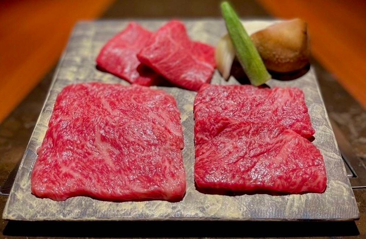 広島古来血統をルーツに持つ蔓牛系の未経産雌のみを厳選。32カ月以上の長期肥育で丁寧に育て、霜降りに頼らず赤身本来の旨さを追求しています。BMS6前後の脂控えめで肉味濃厚、月にわずかしか出回らない希少和牛の榊山牛をお楽しみください。