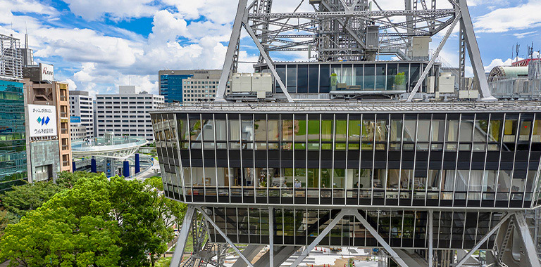 名古屋テレビ塔3階の有料ラウンジ。カフェラウンジ、ワークスペース、会議室、配信スタジオとしてご利用いただけます。