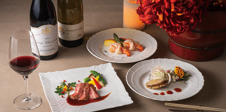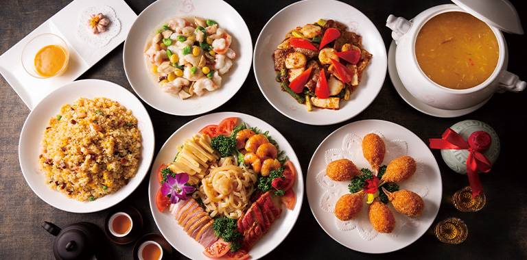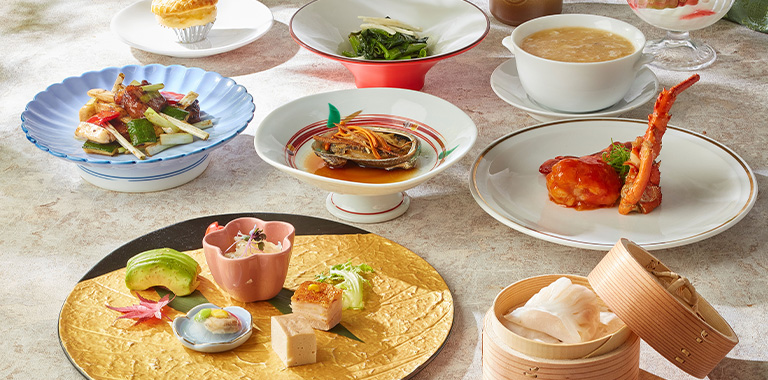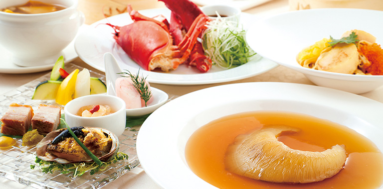本格的な広東料理をベースに、「酔っ払い海老の湯引き」、「香港式活あわびの焼きパイ」など特色のあるメニューや「広東式ハタの姿蒸し」など海鮮料理が人気です。大切な方とのお食事やご商談に、2名様からご利用いただける個室を複数ご用意しています。