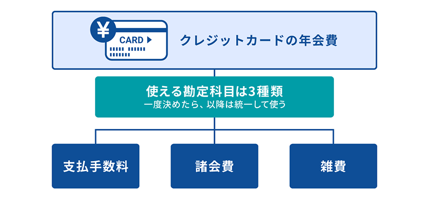 事業用クレジットカードの年会費は、クレジットカードに付帯する特典やサービスを受ける手数料、経費管理の手数料と見なせるため、「支払手数料」の勘定科目が使えます。