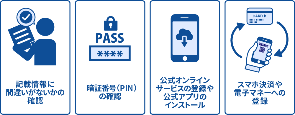 クレジットカードを安全・快適に使うため、カードの利用開始前にすることは以下の通りです。