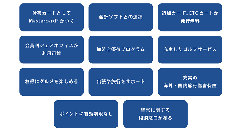 また、ビジネスに役立つさまざまな特典がついたビジネスカードならではの、次のようなメリットもあります。