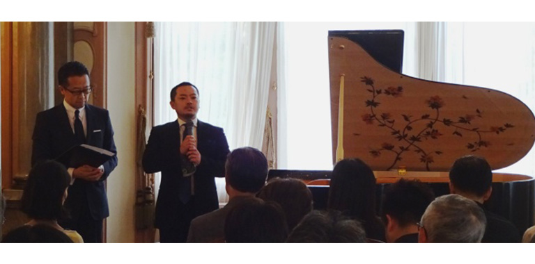 この日のために、東京サロンから運び込まれたベーゼンドルファーは、世界限定18台の「ドラゴンフライ」モデル。