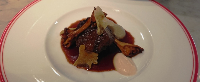 料理の合間に大きな白トリュフと富松氏が各テーブルを回り、皆様思い思いにワインと共に楽しみます。