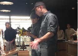 シェフ・パティシエのジュリアン・キンツラー氏の「ボンジュール」の挨拶で始まり、終始、優しく穏やかにフランス語(通訳付き)でデコレーションやカカオについて説明がおこなわれました。