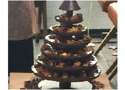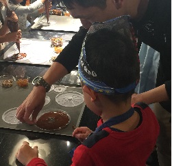 それぞれのテーブルにチョコレートが配られると、チョコレートツリー作りの開始です。小さな手で慎重にチョコレートをクルクルと円を描きながら流し入れたり、ナッツやフルーツを丁寧に飾り付ける姿はとても愛らしかったです。