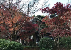 1日目、「料亭嵯峨野」での素晴らしい昼食をお楽しみいただいた後、国の名勝に指定されており秋は9日間のみ特別公開となる「九年庵」で紅葉をご覧いただきました。