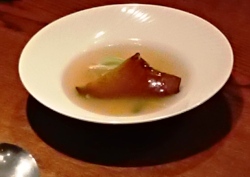 店主の西淵氏が提供する中華料理は、伝統的な中華料理と京都の和食の調理技能を取り入れた独創的なものです。今回は、冬のメニューに「ふかひれ」「つばめの巣」を用いたコース8品を召しあがっていただきました。