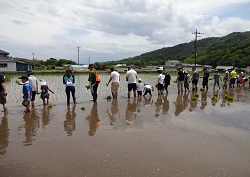 田んぼに入るのを嫌がるお子様や、田んぼにお尻を付けて座ってしまい泥だらけになっているお子様もいらっしゃいましたが、きれいな水や自然の生き物にはしゃぐ姿がとても印象的でした。