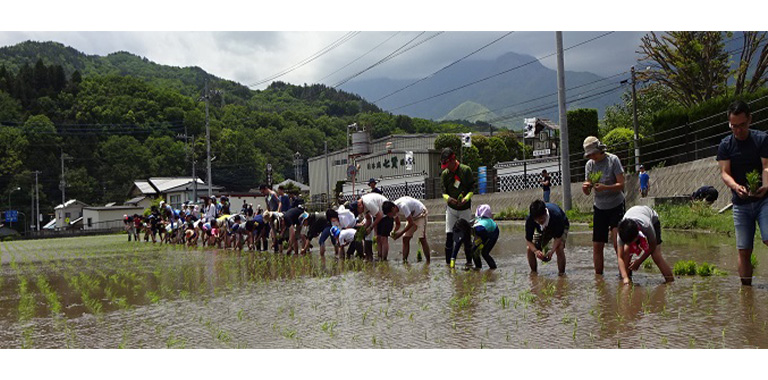 昨年ご好評をいただいた、銘酒「七賢」を造り出す山梨銘醸株式会社とのコラボレーション企画として、田植え体験イベントを今年も開催しました。小さなお子様にもご参加いただき、今回が初めての田植え体験だった方も多くいらっしゃいました。