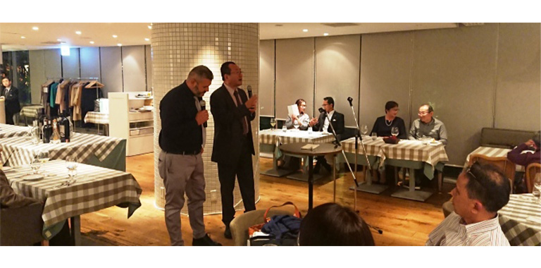 阪急うめだ本店「イタリアフェア2019」共催で、会食会を開催しました。今年のテーマは「南イタリア(シチリア島、サルディーニャ島)」。地元の食材とワインを楽しんでいただきました。昨年につづき会場はトラットリア アル・ポンピエーレ。今年はイタリア本店のエグゼクティブシェフ マルコ氏も来日しました。