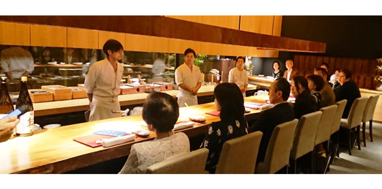 ダイナースクラブとしては初めて貸切会食会を開催。笠原氏が来店し、この日限りの特別コースとお料理にあわせた厳選日本酒も一緒にご用意しました。