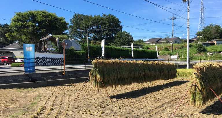 この日は9月上旬にも関わらず、強い日差しが照り付ける真夏のような日でした。日陰で稲を刈る方法を学び、作業をする前から汗ばみながら、田んぼへ向かいます。