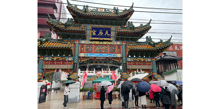 横濱関帝廟でお参りする参加者
