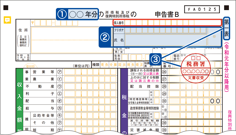 第一表で税務署受領印の押印があるもの
