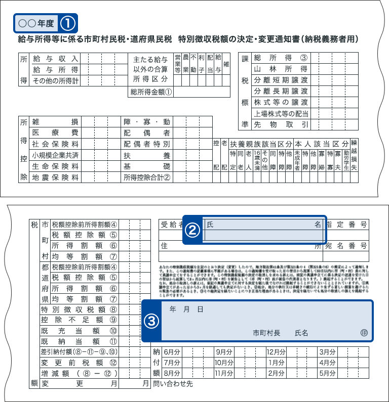 例:住民税特別徴収税額の決定・変更通知書