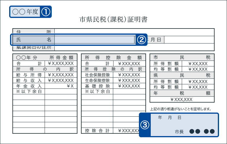 および前年の所得などの課税内容に関する証明書