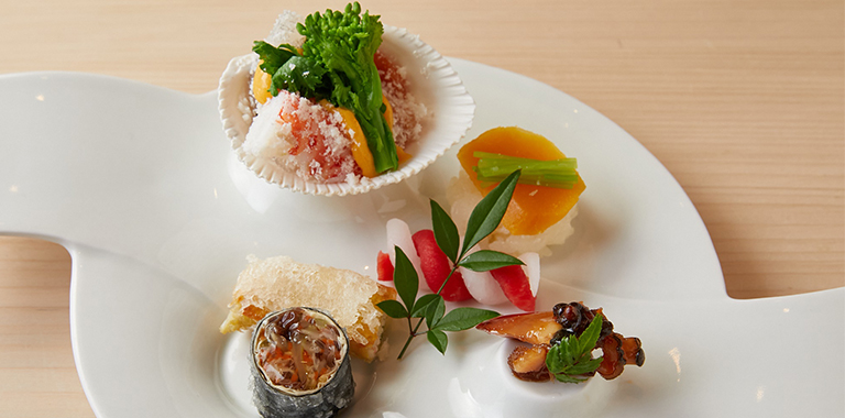 伝統的かつ独創的な、季節感あふれる料理を提供している「分とく山」で学ぶ料理講座です。「和食は決してむずかしくありません」「和食の基本は理にかなう自由な世界で楽しむことです」「なぜそうするのか、理由と仕組みが分かれば料理が簡単になります」とおっしゃる野﨑さんからテーマに沿った料理のコツを学び、お食事をお楽しみいただきます。