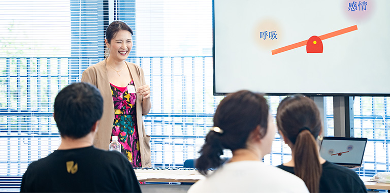 ミュージカル『ライオンキング』のヒロイン・ナラ役をはじめ、3,000回以上の舞台出演経験を持つ上田亜希子氏が講師となり、日常生活やビジネスシーンで役立つポイントを「呼吸」「話し方」「立ち振る舞い」の3つに分けてお届けします。