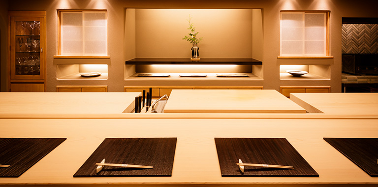 店に入った瞬間から、和の美学が貫かれた空間、空気感、丁寧なおもてなしで和の世界へと誘われる。