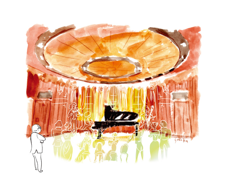 その残響音も、弦楽四重奏やピアノ演奏のための調節がほどこされているので、楽器の持つ、そのものの音が堪能できるように設計されているという。