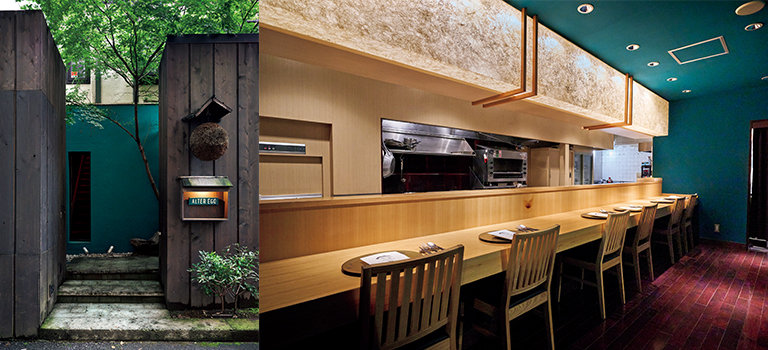 壁の青緑が日本では珍しい色で印象的だが、これはイタリア・ミラノの本店『TOKUYOSHI』の壁と同じ色にしているのだそう。なんともお洒落だ。店名の「アルテレーゴ」とは「分身」という意味で、本店の分身としての意味を込めている。「イタリアではイタリアの食材でイタリア人に和食を、そして、日本では日本の食材で日本人にイタリアンを」というコンセプトだ。