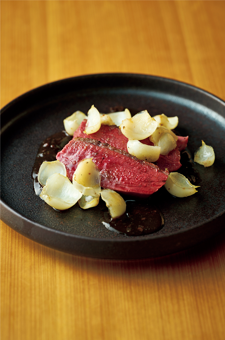 「銀の鴨」は、雌の鴨胸肉の炭火焼きだ。この鴨は青森の新郷村というところで生産されているバルバリー種で、しっとりとしているが肉肉しい味だ。鴨の骨やレバーを赤ワインで煮込んだソースが鴨の風味をより際立たせる。