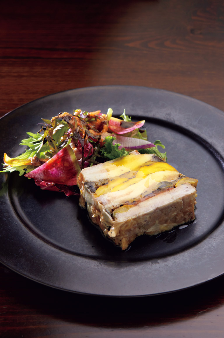 「岩中豚バラ肉と夏野菜のテリーヌ」は、岩手県産の無菌豚をマリネし、しっかり焼いたナスやズッキーニとテリーヌにした一皿。見た目も鮮やかで、白ワインにぴったりだ。秋はシカ、冬はサバと素材が季節ごとに変わるそうで、楽しみはまだまだ続く。料理は全品アラカルト。