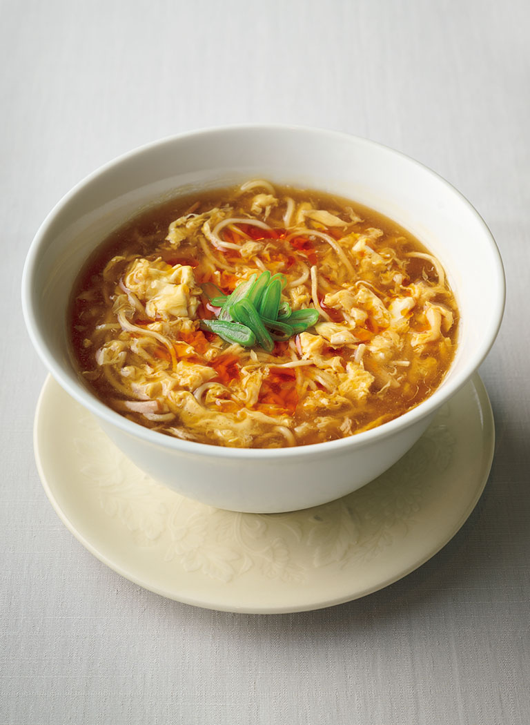 「今月の一皿」は、もちろん大定番の「酸辣湯麺(スーラータンメン)」だ。実はこの酸辣湯麺の発祥の地は、中国ではなく赤坂時代の『榮林』だ。女将の内藤友利子さんの説明によると、当時の料理長がまかないで酸辣湯にたまたま麺を入れたのがきっかけだという。おいしい定番メニューの誕生とは、案外偶然で単純なのかもしれない。