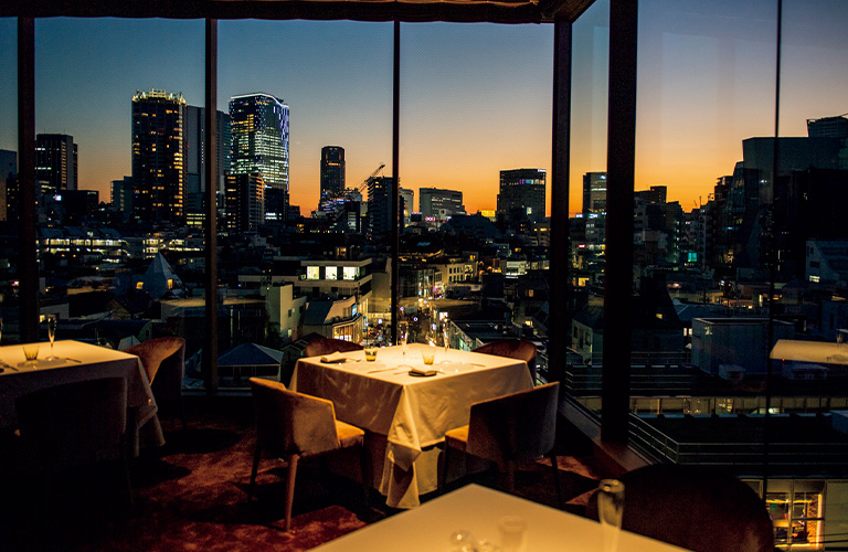 冬だというのに暖かな木漏れ日を感じながら散歩していると、ひときわ目立つファッションビルがある。その『GYRE』の4階に店を構えるのが『élan(エラン)』だ。フランス語で「飛躍」という意味のある店名は、信太竜馬シェフの修業先だった『エスキス』のシェフ、リオネル・ベカ氏と一緒に考えて命名したという思い入れのあるものだ。