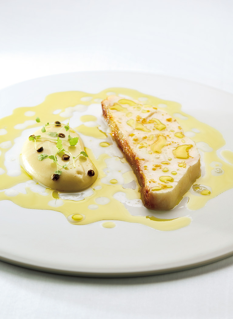 さて、そんな『élan』の今月の一皿は、「クエ きたあかり 柚 ポワブルマーガオ」。フランスの魚にほどよく似ているというクエは、日本では刺身や鍋料理が多いが、そこは信太シェフの創造力と豊かな感性で微量な火入れをし、ローストして仕上げている。
