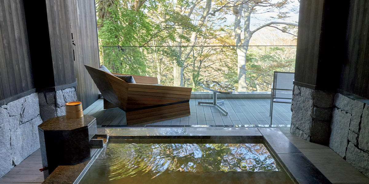 そしてもう一つの楽しみは、なんといってもホテル客室の露天風呂である。箱根の豊かな温泉を存分に味わいながらテラス越しに見えるこの季節の紅葉は、日常を忘れる穏やかな時間になること間違いない。
