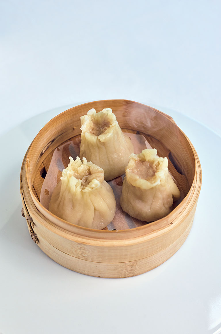 山橋シェフ考案の「長崎県産"諫美豚"と有機玄米庄分黒酢の酢豚」はアラカルト(4,048円)はもちろん、一部ランチコースの中にも組み込まれている。夏の風物詩にもなっている「五目冷やしそば(胡麻ダレ)」は点心とデザートがセットになった平日限定の冷麺ランチセット(4,806円)や、アラカルト(3,668円)で楽しめる。花焼売(2個*写真は3個)1,265円。*いずれも税・サービス料込み