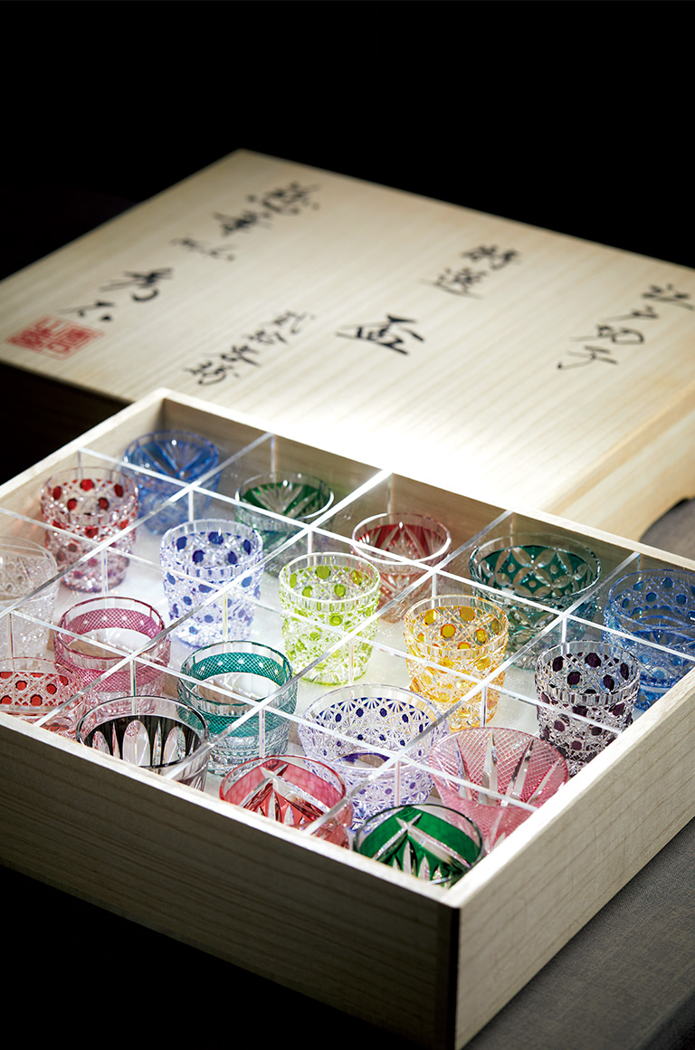 そして、おいしい料理にはおいしいお酒が欠かせない。堀口切子三代目の秀石さんにお願いしたという色とりどりの江戸切子から選んで、ぜひ紹興酒を楽しんでほしい。実は、お店のオリジナルでつくられたグラスが一つだけある。どれかは秘密。ぜひ田村さんに尋ねてみてほしい。