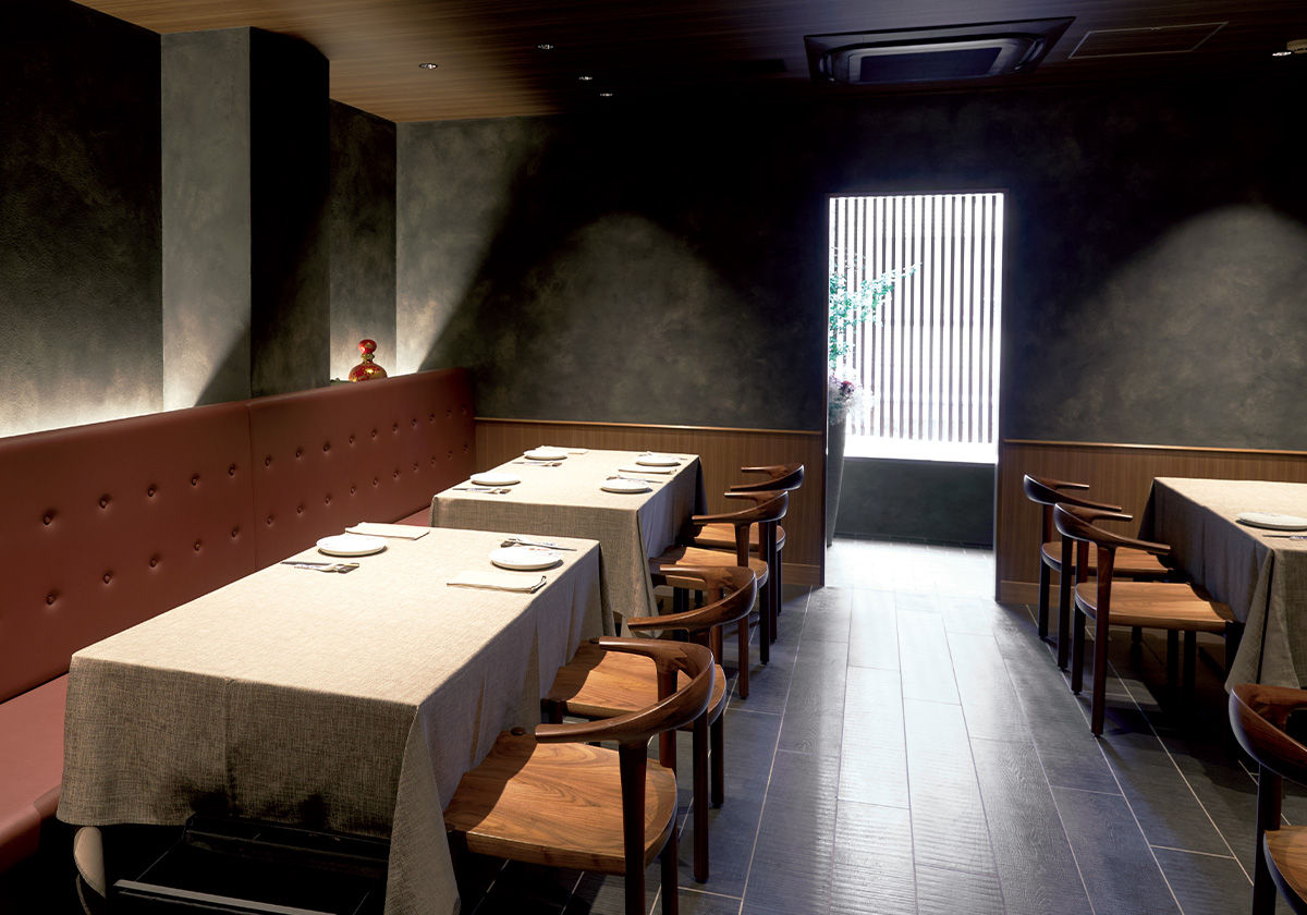 その銀杏並木を背にしてとある路地を入るとすぐにたどり着くのが、『慈華itsuka』だ。初夏の気持ちいい空気を楽しみながら店内に入ると、きりっとした気持ちのいい空間が迎えてくれる。昨年の12月にオープンしたばかりの新店だが、料理長の田村亮介さんは大ベテラン。新たな地で、新たな料理に腕を振るっている。『慈華』とは、〝素材と人、そして料理を慈しむ〞というコンセプトでつけられた店名だが、〝日本と中国との融合〞という田村さんのこだわりも、同様に込められている。