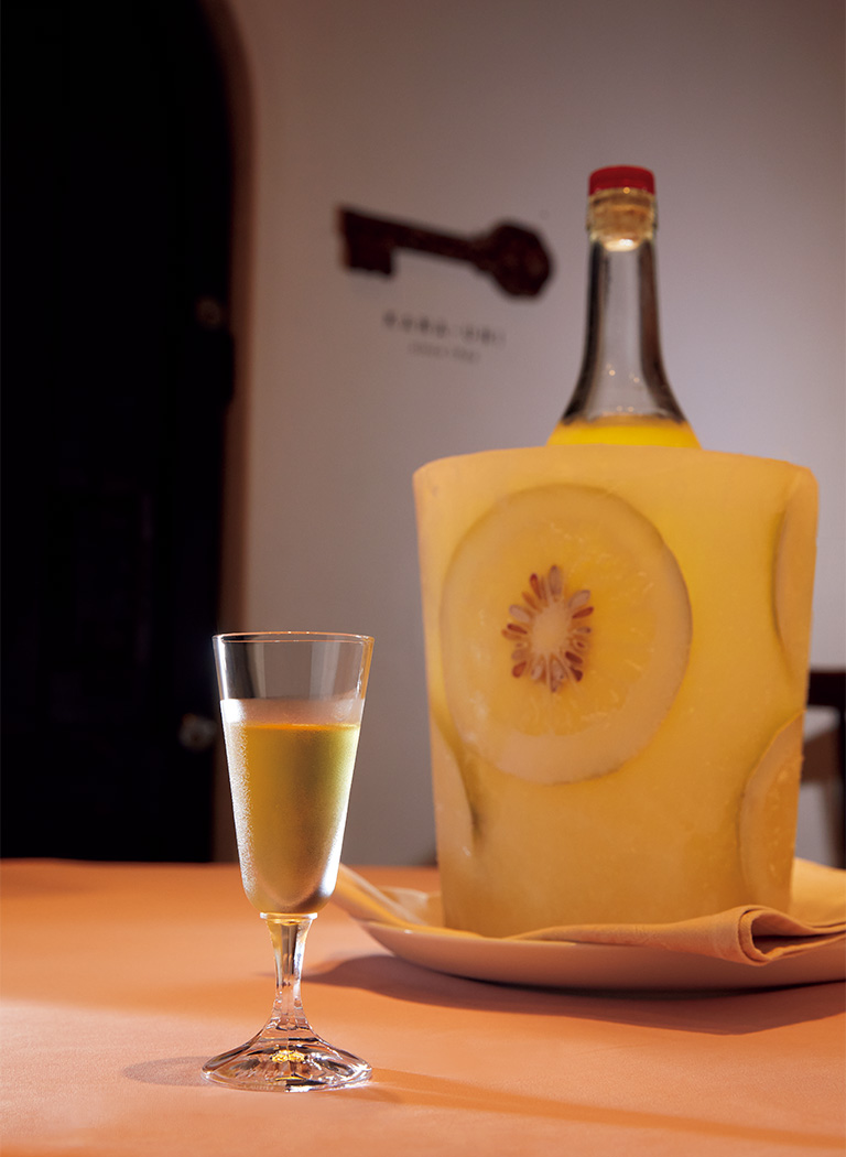 食事も終わったちょうどいいタイミングで、「レモンチェロでもどうですか?」と横田さん。天性の接客術は父親譲りなのだろう、いつもいいタイミングで話しかけてくれる。そのレモンチェロは、元赤坂時代のバーテンの武居永治さんと常連客とで、3年かけて創り出したもの。試行錯誤の後にラムを使うことに辿り着いたという。甘さ控えめでキリッと冷えたレモンチェロ、ぜひ、食後にお試しあれ。