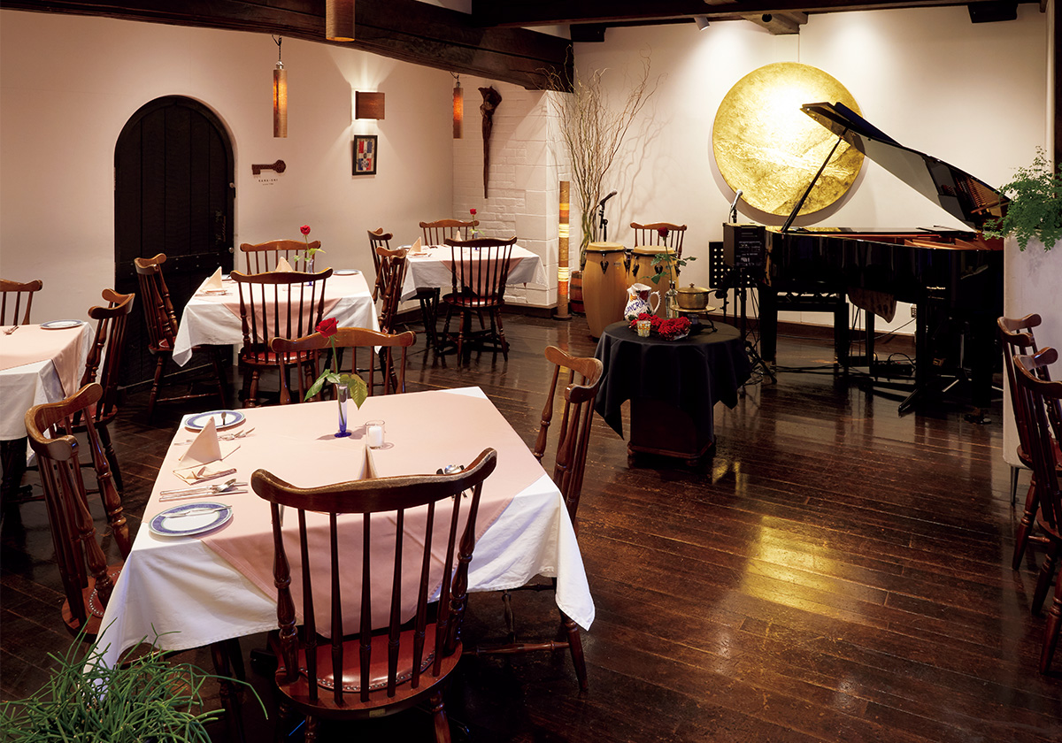 ところがそれから時が過ぎた昨年の暮れ、敬愛する方からディナーに誘われたのが、なんと新『カナユニ』。場所を南青山に移し、初代オーナーの横田宏さんの息子の誠さんが復活させたのだ。テーブルも椅子も、もちろんピアノも当時のまま。おまけに元赤坂時代の入口の扉までが、壁に埋め込まれている。
