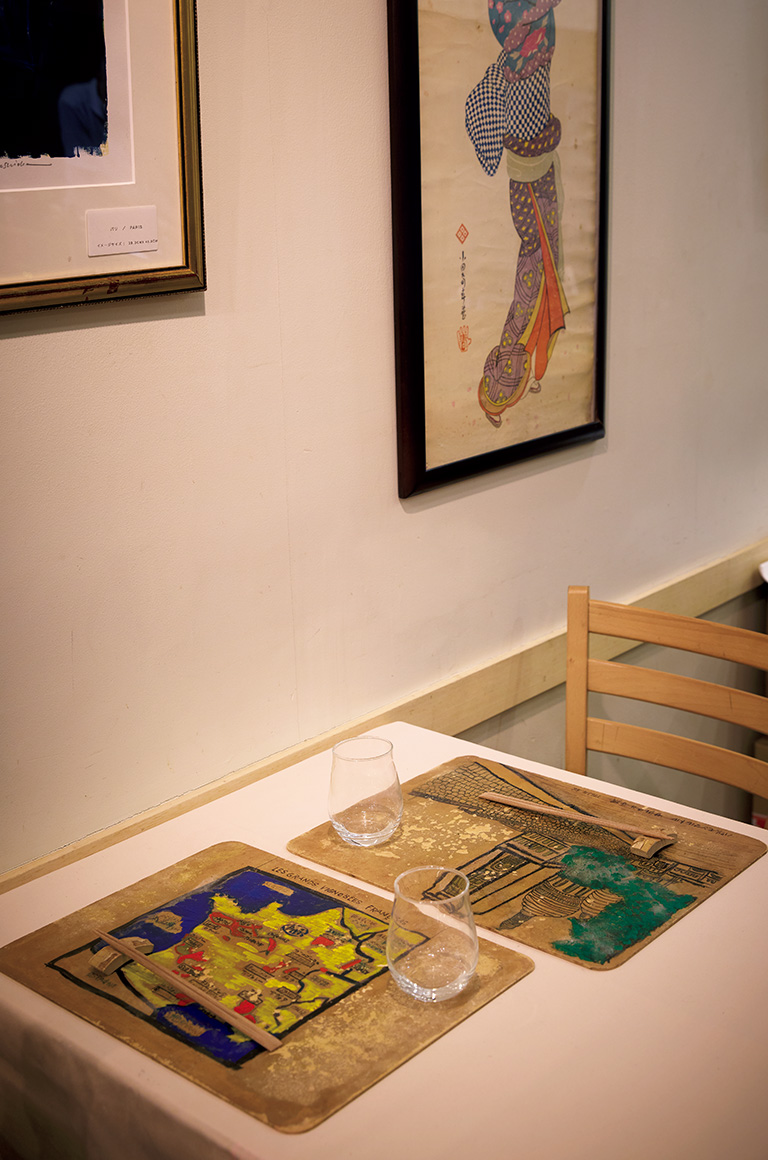 メニューは定番のフォアグラ大根も含めた全8品のおまかせコース(8,800円/税込)。一皿ごとにペアリングされる世界各国のワインは、80種以上もある。一枚一枚ムッシュが手描きした折敷には、パリに滞在していた頃の思い出が描かれている。和食の店なのにどこか外国の風情が感じられるのも、『小田島』の魅力だ。