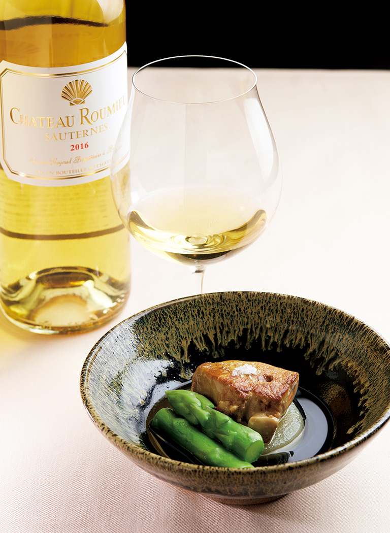 合わせるワインはソーテルヌ。〝和食直球〞なのに、なぜか合う。みごとである。