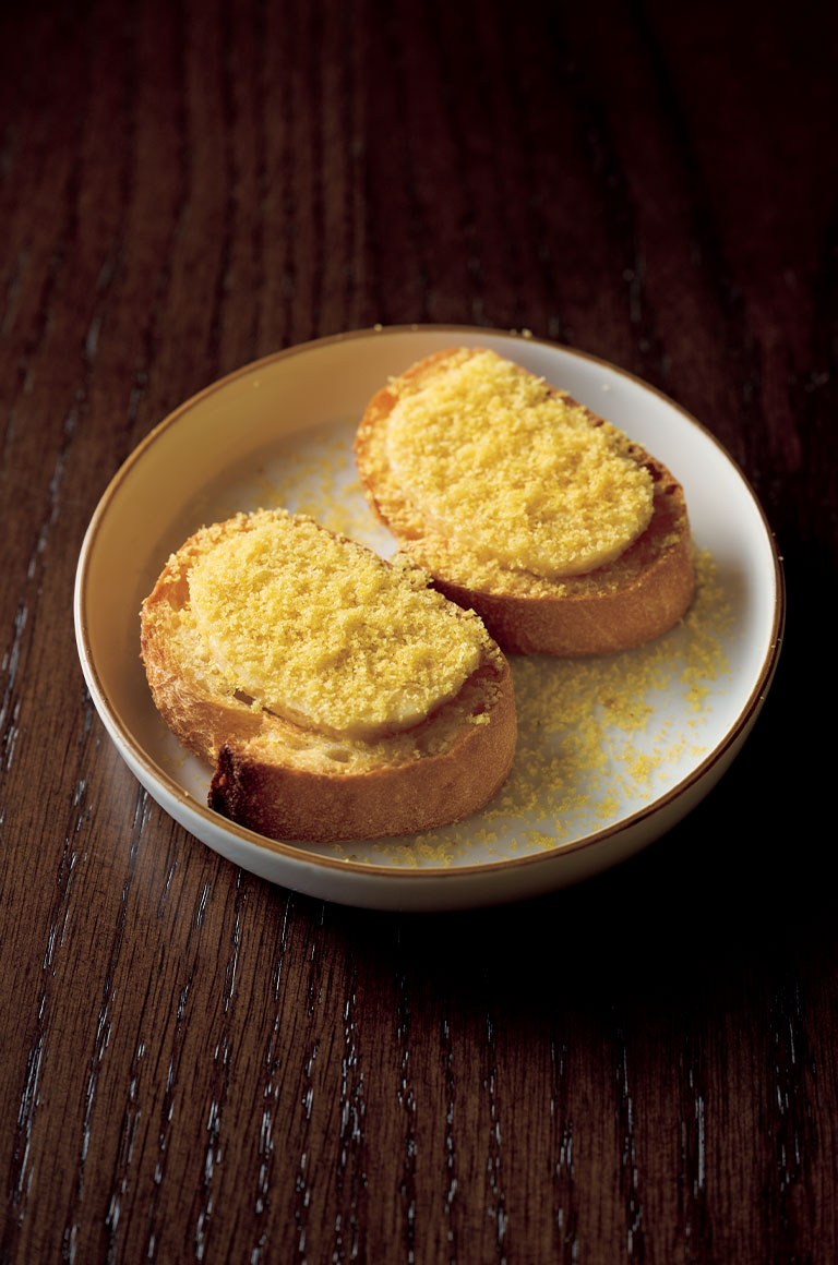 そして「からすみバタートースト」は、つまみとして最高だ。鮎の魚醤を練り込んだというからすみは塩辛過ぎず、しつこ過ぎず。