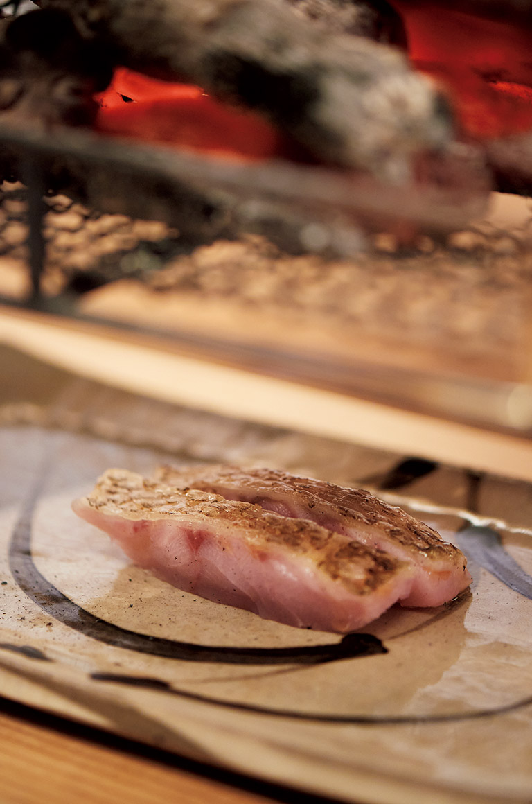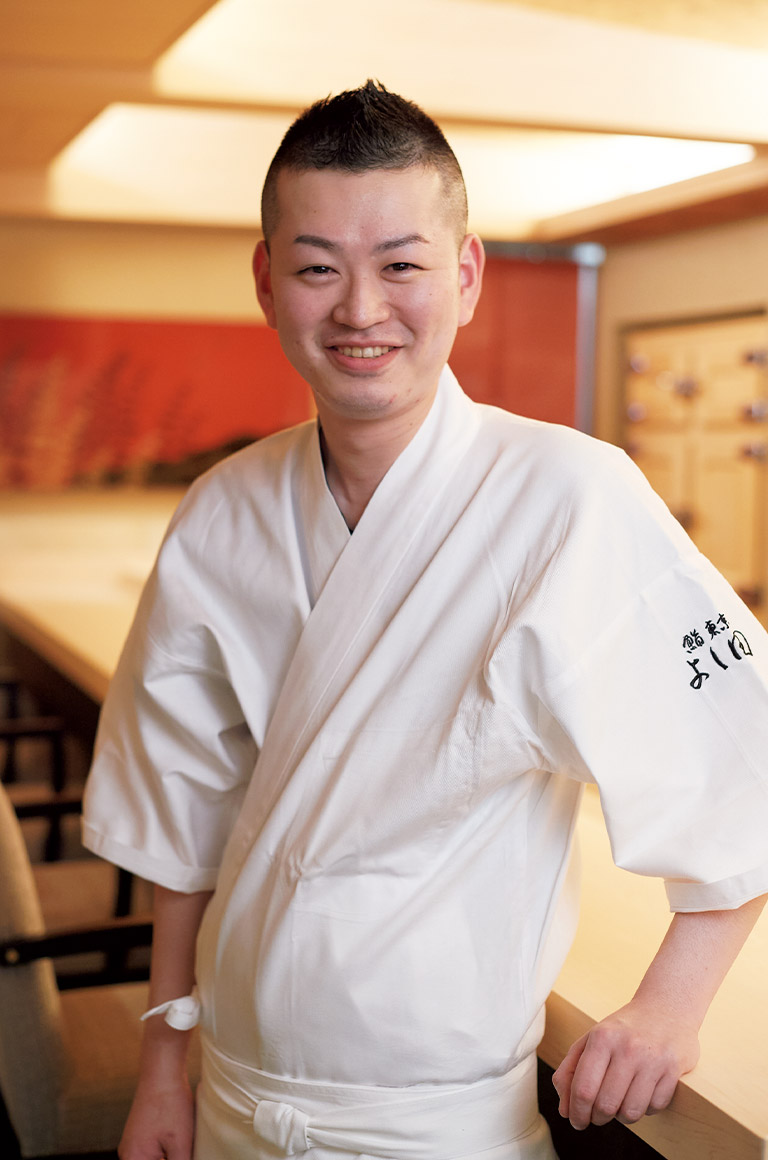 ネタの種類によって赤酢と白酢を分けて握り、その素材の味を極限まで引き出す藤本料理長。「ほかのお店と同じではおもしろくないですから」と話すが、奇をてらったものは使わず、素材で直球勝負と潔い。その反面、バーナーではなく、炭の力で皮を炙った刺身など、丁寧に仕上げる一品一品は、味わいに深みがあることがすぐにわかる。