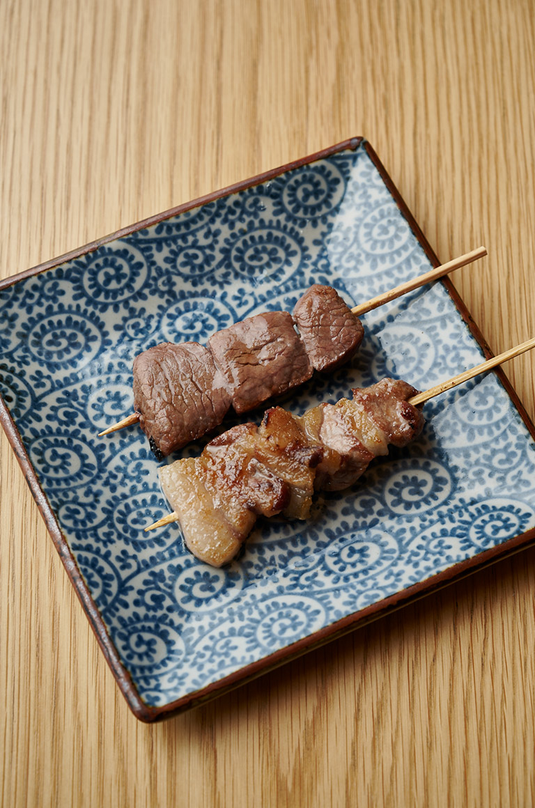 さて、令和元年初の「今月の一皿」は、その黒岩さんの鶏の「焼き鳥」。なんともきれいな生肉をていねいに焼き上げた串は、どれもこれも素晴らしい。それぞれがシンプルでいて濃厚だったり、あっさりだったり、すべての串で少しずつタレや塩の味を変えている。好みにも応じてくれるが、ここはお薦めで食べたほうがよい。