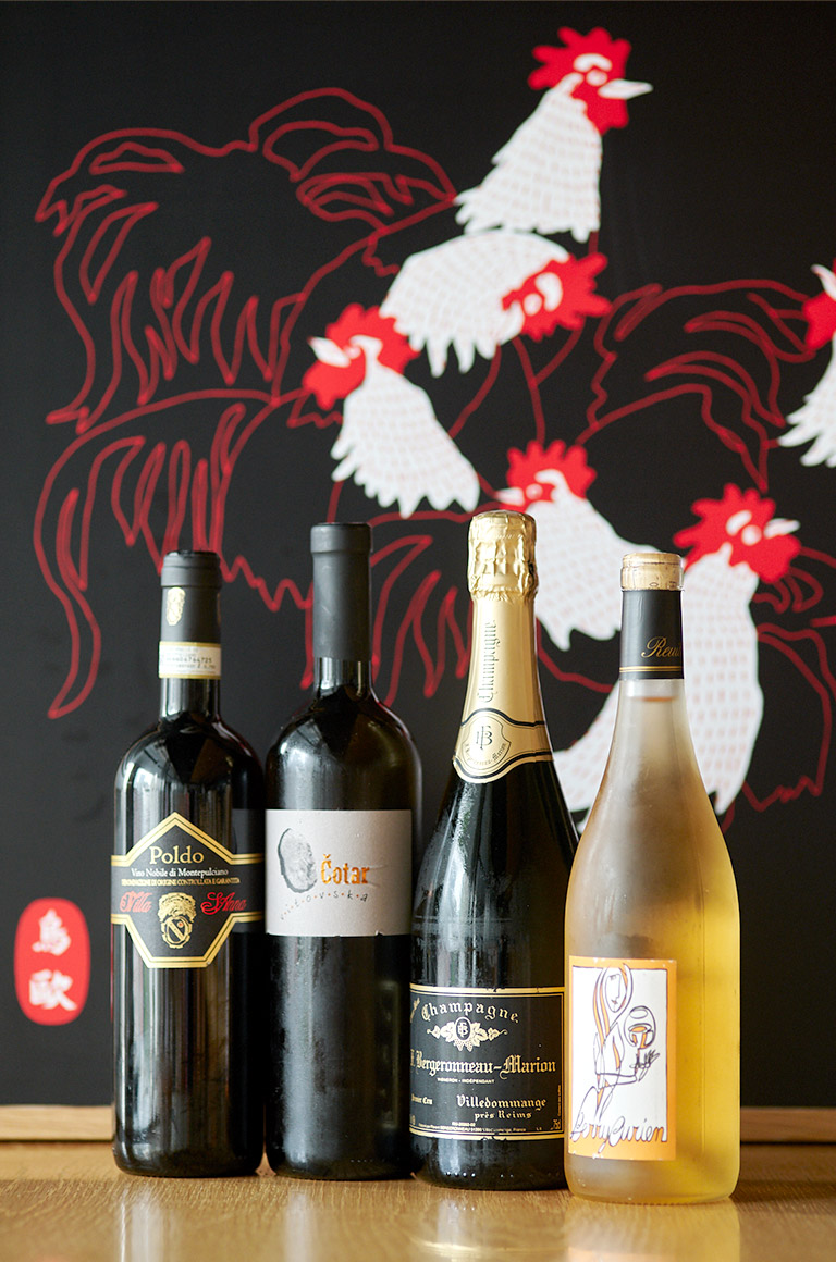 自然派が中心のワインはすべて生産者の畑を訪問して選んだものしかなく、シャンパーニュから白、赤と、種類も豊富だ。実は締めのラーメンも人気の一品。鶏の出汁が効いたスープもまた絶品。ぜひ、お試しあれ。