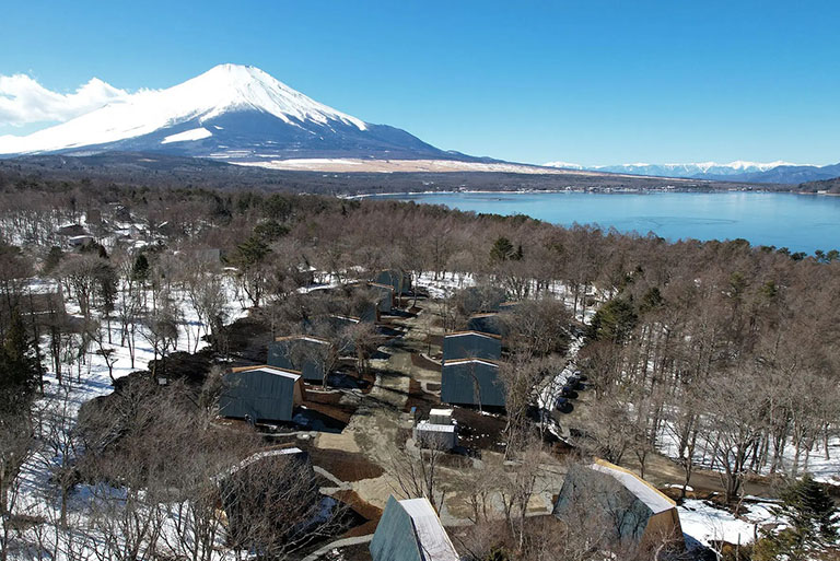 富士山を間近に望める富士五湖の一つ山中湖のキャビン「山中湖 1st」。