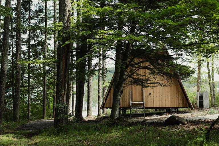森に包まれた「白樺湖 2nd」のキャビン。