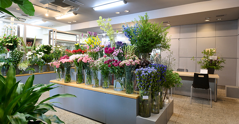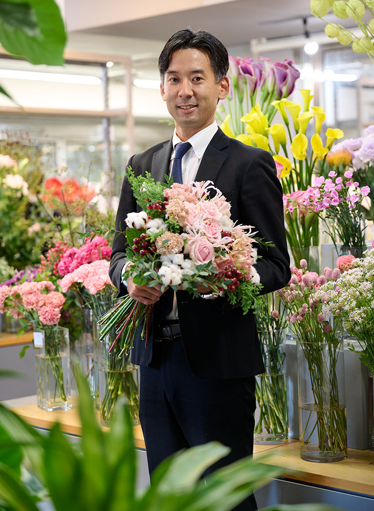 「世の中にはたくさんの生花店がありますが、仕入れる花の品質にはかなりの差があります。生産者さんによっても違いますし、同じ生産者さんが育てる花でも等級が違うことがあります。また、輸送の時の梱包の仕方や、水につけて鮮度を保つなどの気遣いも大切で、その違いは花の品質に顕著に表れます。そのため、弊社は優良な生産者さんから一番いい等級のものを仕入れています。入荷後もいい状態を保つようにと、透明の器にきれいな水を入れ、水が濁らないように頻繁に取り替えます。お客様のお宅でも長持ちする花だけを、店頭に置くようにしています。お客様にそれを実感していただけることが、我々の申し上げる“本物の花体験”です。本当のお花の良さを感じていただければ、もっとお花を好きになっていただけるのではないかというのが、我々のコンセプトです」