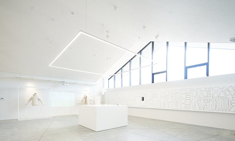 空調には輻射冷暖房を採用。風が生まれないため、糸が揺れることも、人の体に風が当たることもない。
